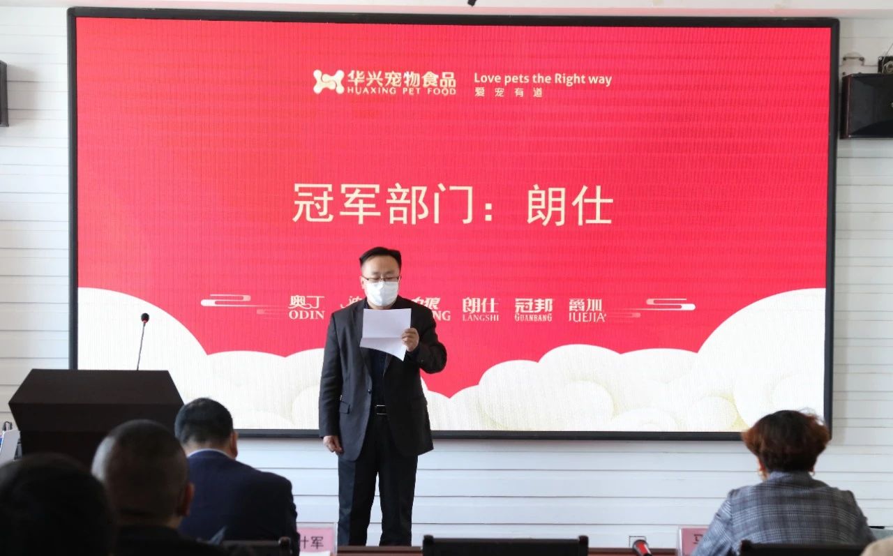 伴隨著鼓舞人心的開場音樂,主持人宣布華興寵物食品表彰大會正式開始。主持人公示銷售部增長率排名名單并宣讀銷售部的前三名。